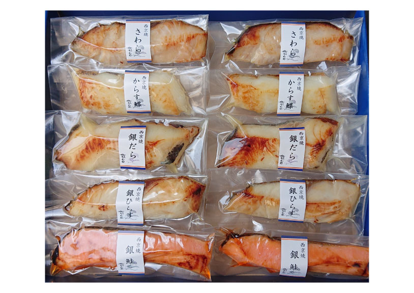 銀鮭西京焼、からすがれい西京焼、さわら西京焼 銀だら西京焼 銀ひらす西京焼 各2 計10